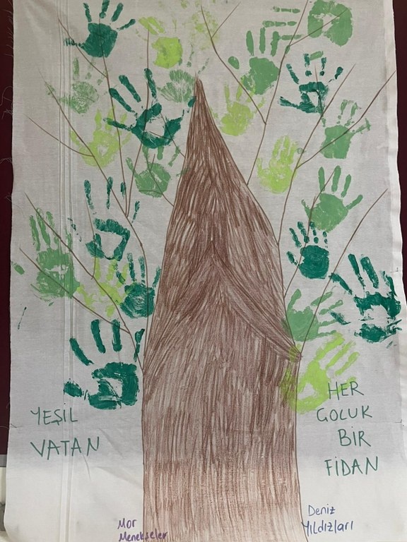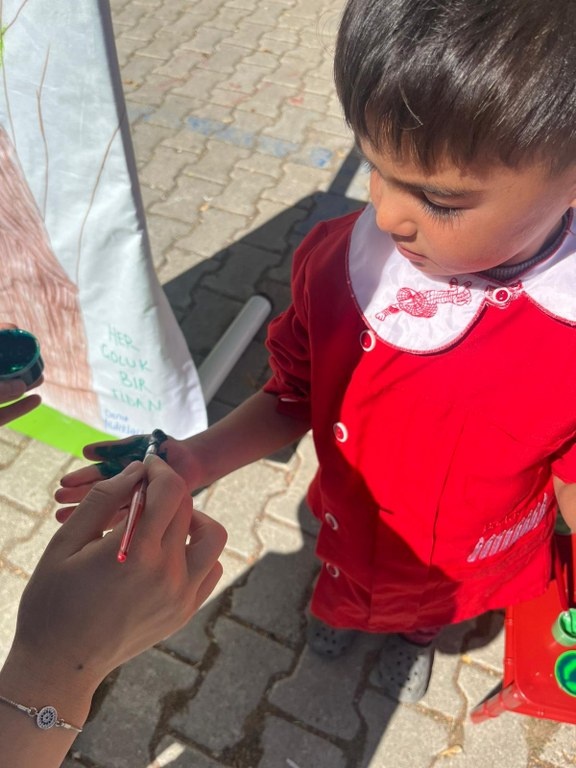 Yeşil Vatan projesi kapsamında Deniz Yıldızları ve Mor Menekşeler ana sınıfları "Minik Eller Yeşil Vatanda" etkinliğini gerçekleştirdiler. Bugün doğaya dokunan çocuklarımız, yarının koruyucuları olacak. Onların ellerinden çıkan her etkinlik, geleceğe bırakalan umut dolu izlerdir.